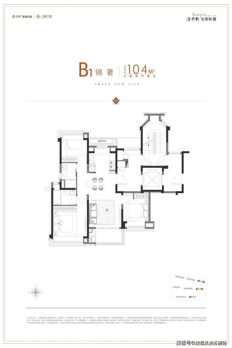 但保利虹桥和著的建面约104㎡3房2卫,却很好的解决了以上所有问题: