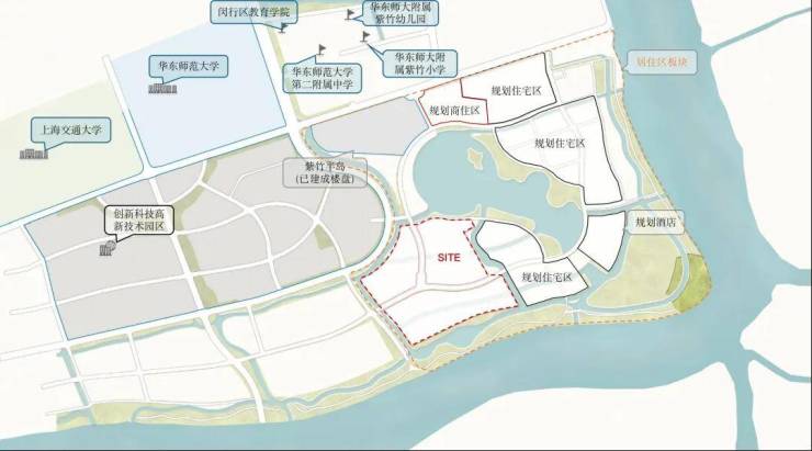 项目西侧是紫竹高新技术园区、北面是交大和华师大校园,以及紫竹基础教育园区,包含幼儿园至高中全龄段教育配套。