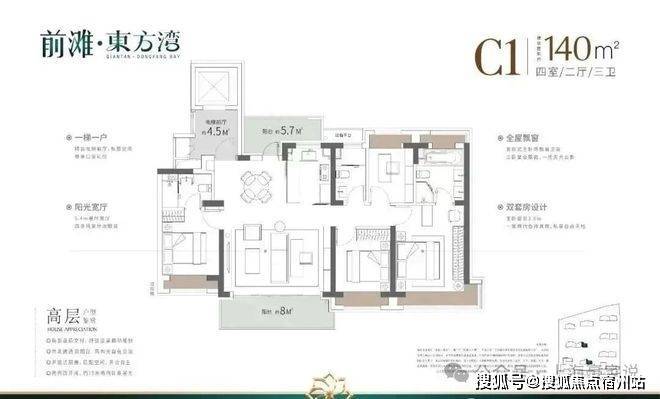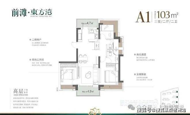 这3个户型三开间朝南、室内“朝南2飘窗+1阳台”、再加上“2卫”、“动静分离”的设计,不管是采光、视野、通风、私密性,还是实用性都十分出色.