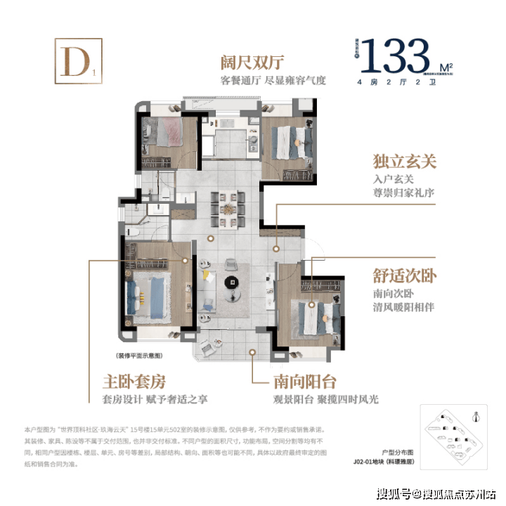 深入洞察高阶人居需求,匠心打造的建面约133㎡4房2厅2卫户型,尊崇独立入户玄关,演绎星级归家仪式感;更以经典四叶草空间布局,延展全周期百变空间,满足家庭成长所需,匠呈三代同堂的藏品奢境。