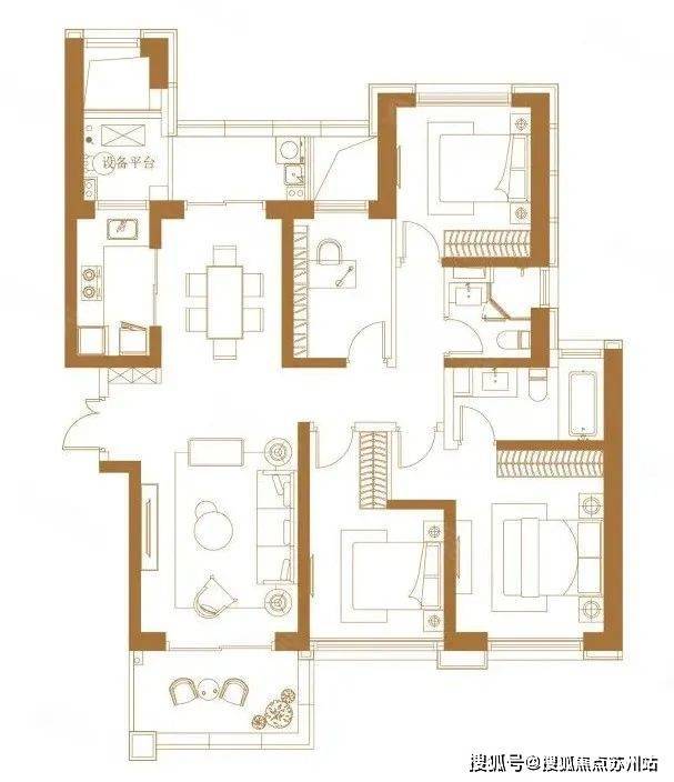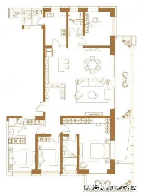 195㎡户型(4室3卫)特点: