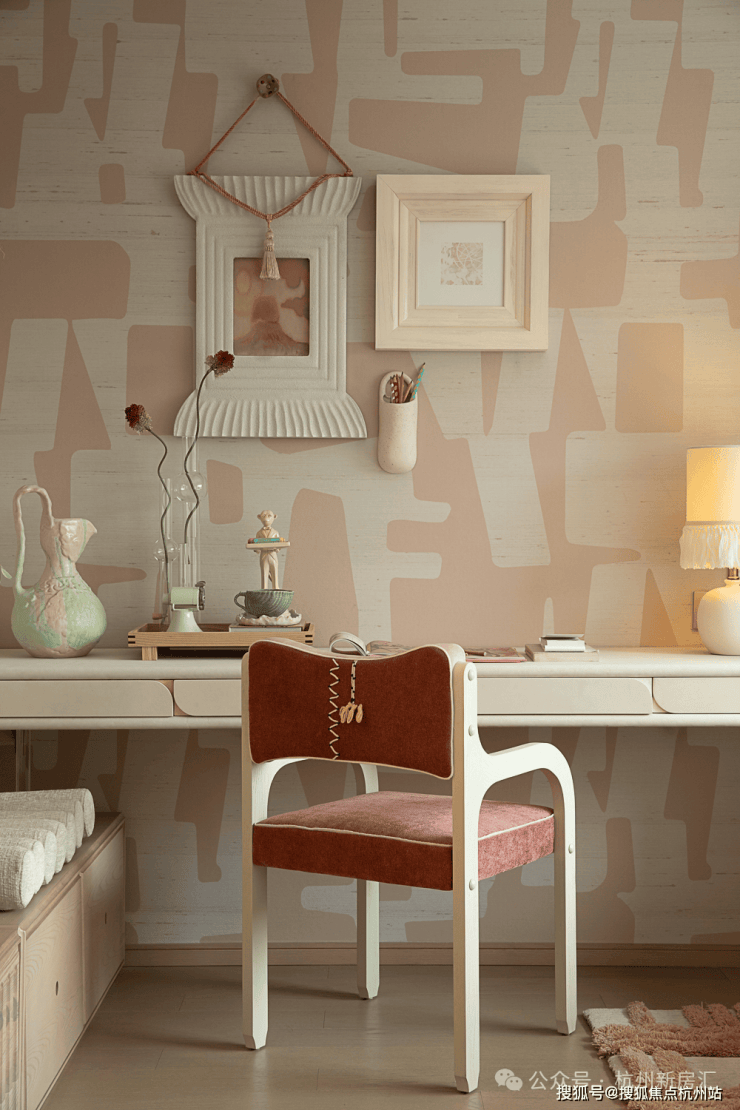 老人房以素雅笔触晕染宁和意境.家具以圆润弧线与沉稳倚靠,传递温柔关怀.书房与主卧相连,构筑静谧的精神容器.既容一人静思,也纳亲子絮语,知识与情感在此悄然流动,延续着独属于当代的耕读意境.