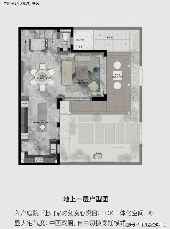 园林景观:采用一轴一带五进十巷多节点格局,巧妙纳藏多功能自然互动场域,古典与现代造园手法相融,循宋人之迹,建山水之园。