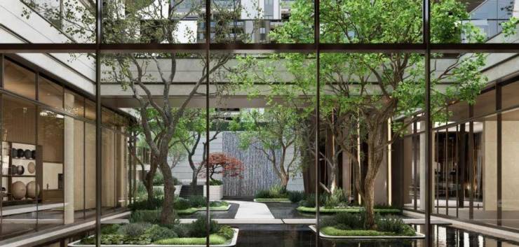 其中中央景观带约2000㎡,涵盖林下休闲区、阳光草坪、秘境水院,并设轻奢会客厅与家庭会客厅。