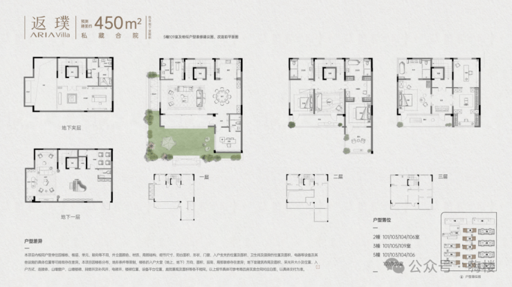 合院户型:417-468㎡大合院、340-383㎡小合院(包含地下室面积)