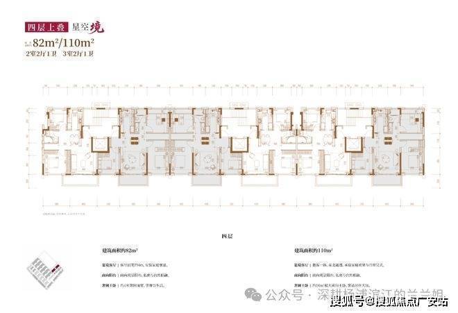 建面约82㎡2房2厅2卫/110㎡3房2厅2卫(四层上叠)
