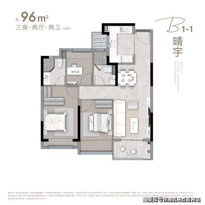 建面约85-96㎡3房