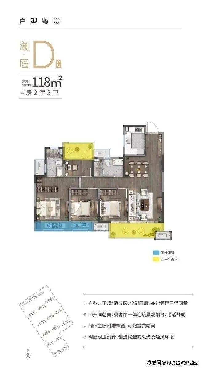 建筑面积约80-119㎡全生命周期户型,二房到四房设计,承载从二人世界到三代同堂的家庭进阶过程,60%精装比例,适应不同家庭所需,构筑更为丰盈的生活场景。我们希望为每一户打造的家不是过渡,而是一生居所。