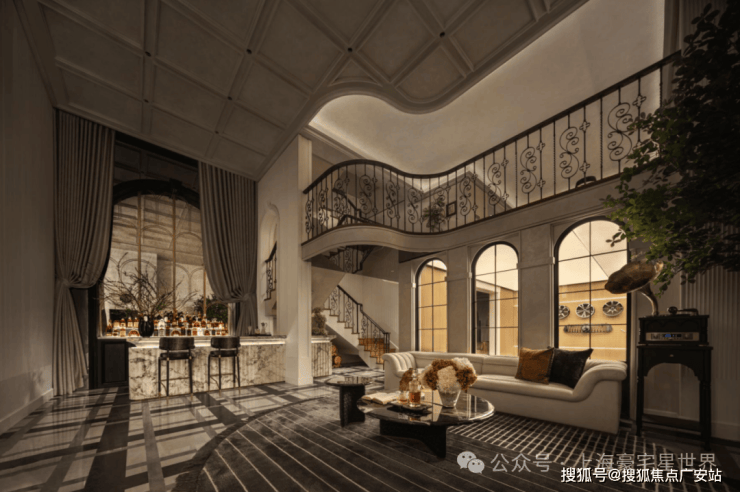 一层的客厅也是拥有大尺度的面宽和进深,将近50㎡的大尺度客厅,可随心放置6-8人餐桌,还可布置9-10人的沙发休息区,在这里举办十几人的party也是绰绰有余。