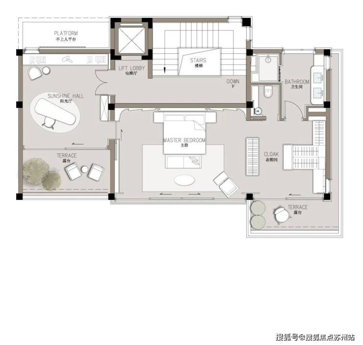 比如,传统别墅户型的常间面宽在8到10米左右,对比现在流行的大平层产品,客厅和卧室的空间感就会更局促、缺少气度。