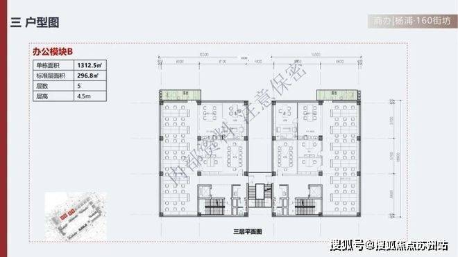 地上5层+地下1层,地上层高4.5米,地下层高5.25米。