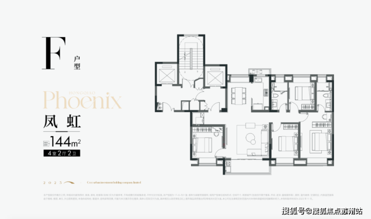 ·建面约144㎡4房则是项目的终极改善户型,做到了惊人的四开间朝南+南北通透+客餐厅一体化,采光、通风以及尺度感拉满!4房7飘窗1阳台+2梯2户,私密性以及视野同样非常出色,加上整体稀缺的供应,千万要抓紧!