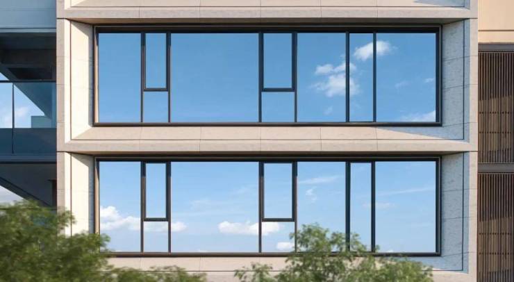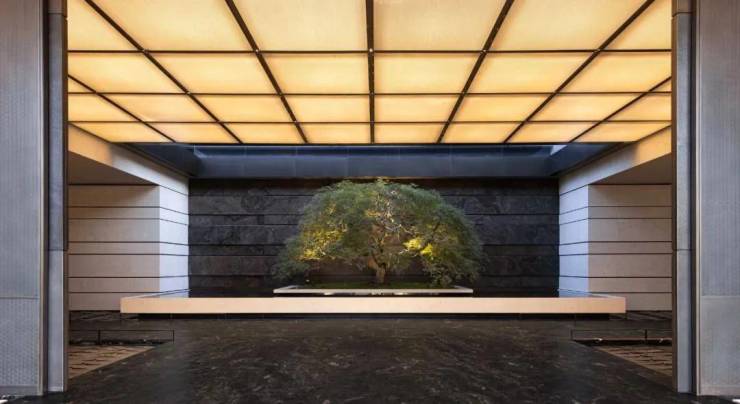 至于建筑立面堪称市中心“颜霸”,高层底部以沉香米黄石材多重叠加,主体大面三玻两腔玻璃幕墙+仿石铝板斜切面,搭配古铜色铝板内侧镶边打造大尺度油画框般经典华丽的立面,北侧搭配深灰色格栅强化立面对比效果。