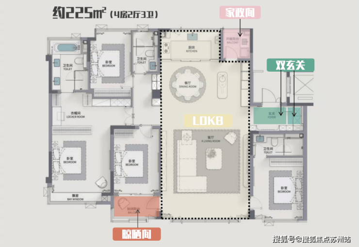 225㎡户型,四房两厅三卫↓↓↓
