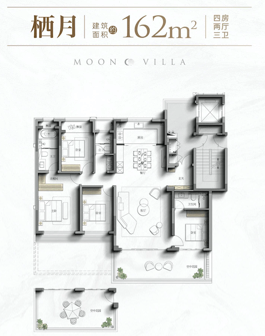 建面约162/164㎡四代洋房:每户都拥有一个约20多平米的空中花园!通过巧妙的错层设计,把花园搬到了空中,实现了真正的“户户有庭院”。无论是种花种草,还是作为孩子的游乐场、大人的休闲区,都太惬意了。而且面宽达到约15米,还有南向双套房,居住尺度感一流,完美诠释了苏州四代住宅的创新理念。