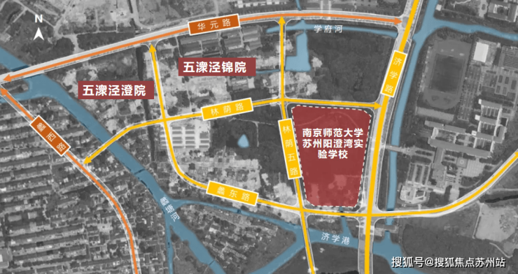 五潨泾锦院周边,汇聚了苏州大学阳澄湖校区、陆慕高级中学、苏州大学第二实验学校等多所知名学府。