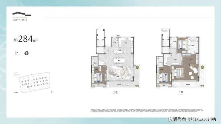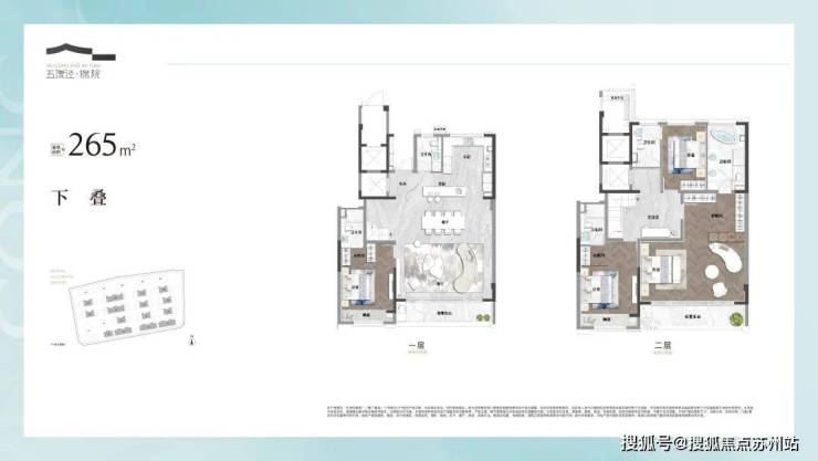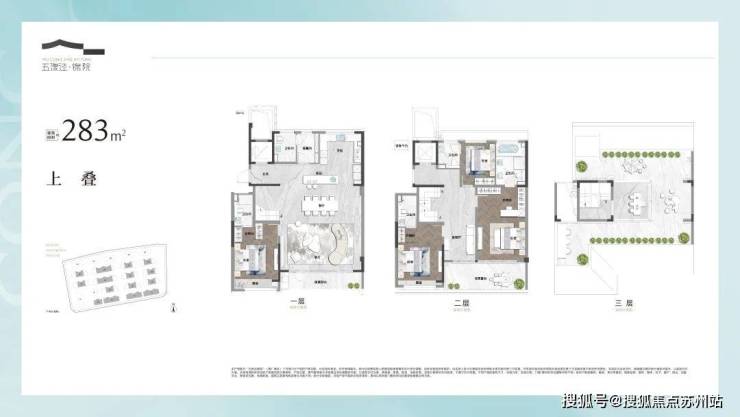 在社区内部,完整中轴动线+多组团形成山水秘境;上叠星空露台云端生活场,下叠亲近自然,由外而内还原当代苏式墅居场景。