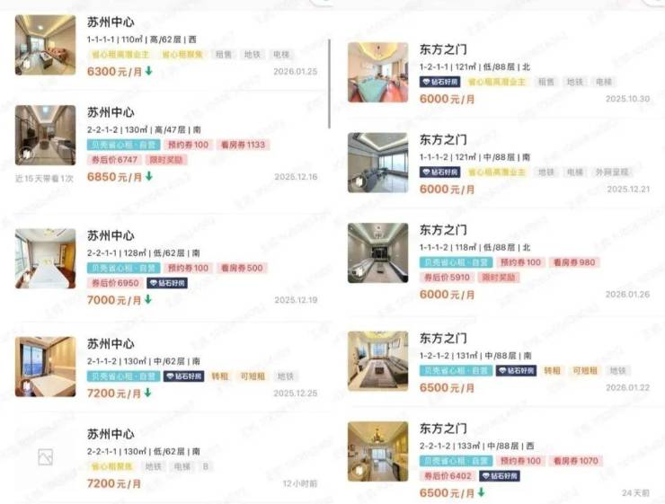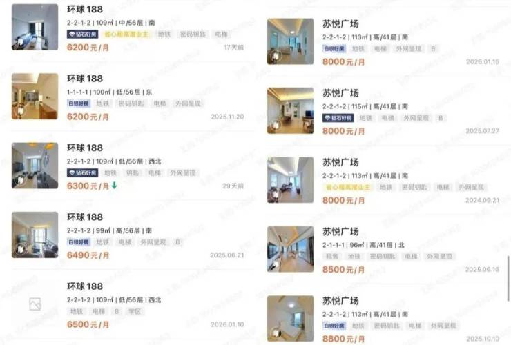 目前湖西比较具有代表性的同类产品有苏州中心、东方之门,百平左右的户型月租金6k+。