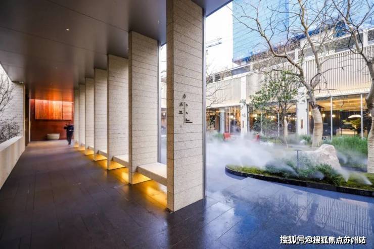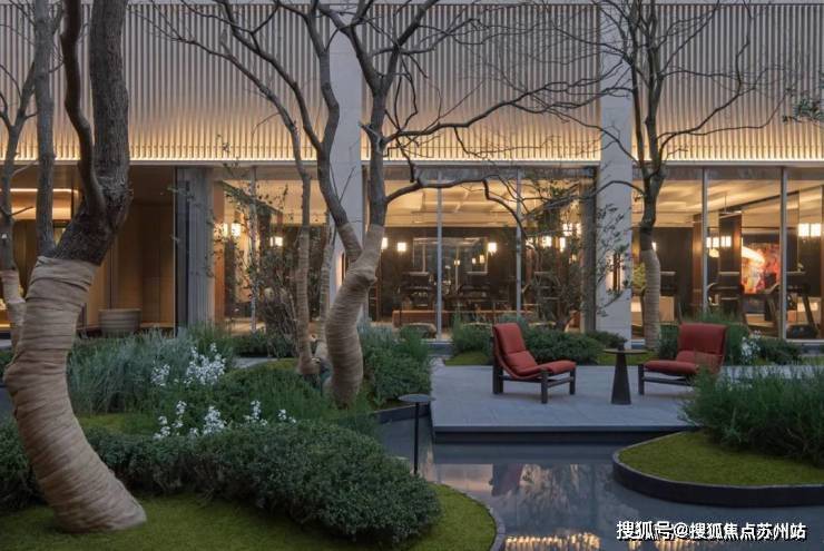 步入社区,首入眼帘的是6米高水幕的下沉式山水庭院,与周围建筑融为一体,将自然与松弛感带给社区。