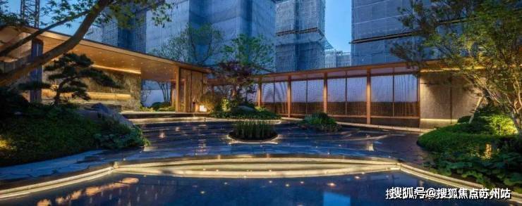 聆星客厅前方种植了松界王者—— 日本黑松,约4000万+的顶豪融创外滩壹号院的社区内,也有一颗同款;