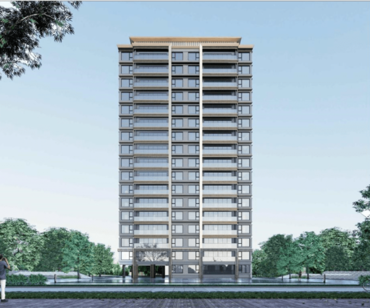 项目整体规划仅有6栋14-17层的小高层,总共才186户,非常纯粹低密。它巧妙地把旁边的劳动公园、胥江天街和河景都“借”了过来,让社区与城市繁华自然交融,却又保持静谧。