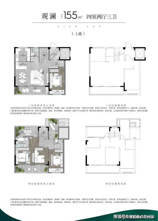 叠墅(下叠):175㎡户型配南北双花园,LDKG一体化巨厅超40㎡
