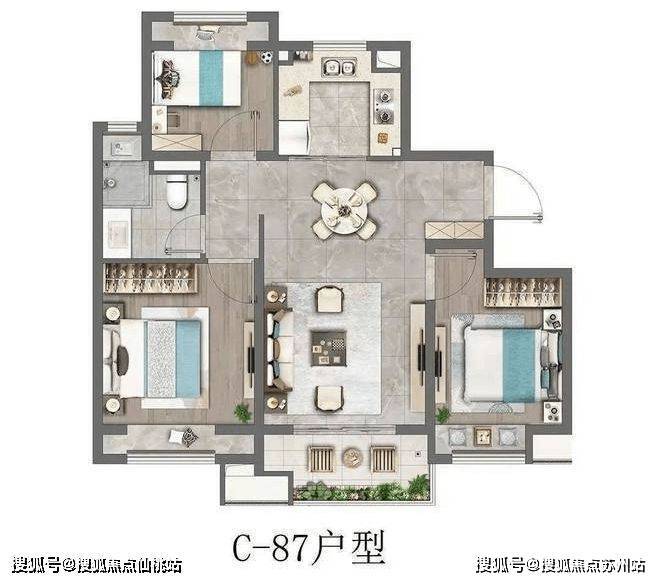 建面约104㎡的3房户型,四开间朝南+主卧套房设计+全卧室带飘窗+南北通透+超大的宽面阳台,做出了拥有120㎡以上户型的尺度感和舒适度。如果预算合适,这个户型绝对推荐。