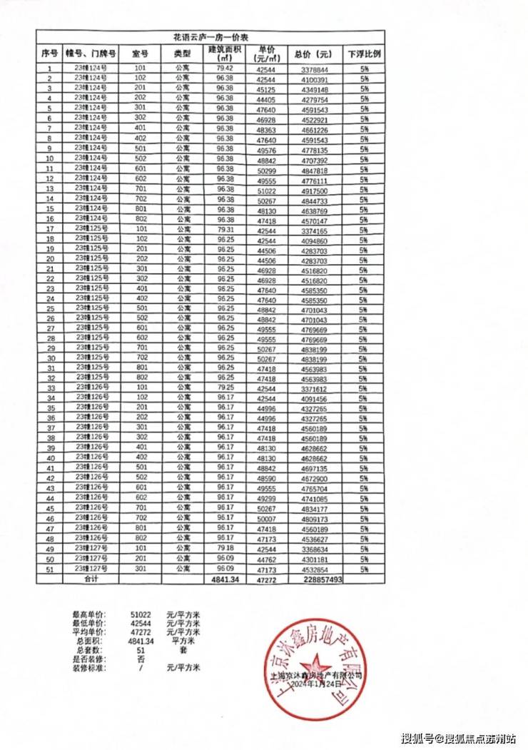 附一房一价表: