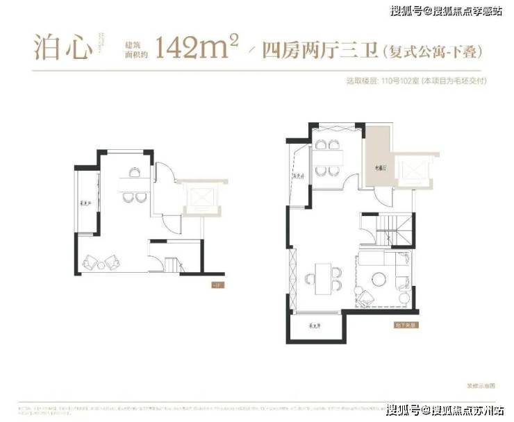 下叠户型4房2厅3卫,一层会客区,二层居住区,附带地下空间,可以根据主人喜好,定制成如健身房、酒窖、影音室、台球房等,任凭想象。