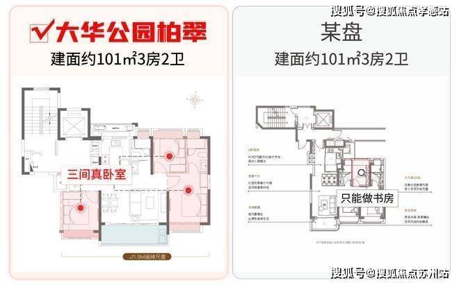 相比竞品户型的2房+1个功能房,其功能性天壤之别。