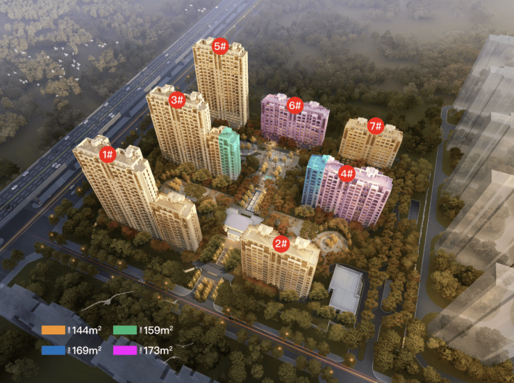 项目主打纯粹改善户型,目前主力在售的是建面约144㎡、159㎡、169㎡和173㎡的户型。所有户型都采用两梯两户的设计,保证了每一户的通风、采光和视野的最大化。户型格局方正,空间利用率高,能够很好地满足多代同堂或二胎家庭的居住需求。