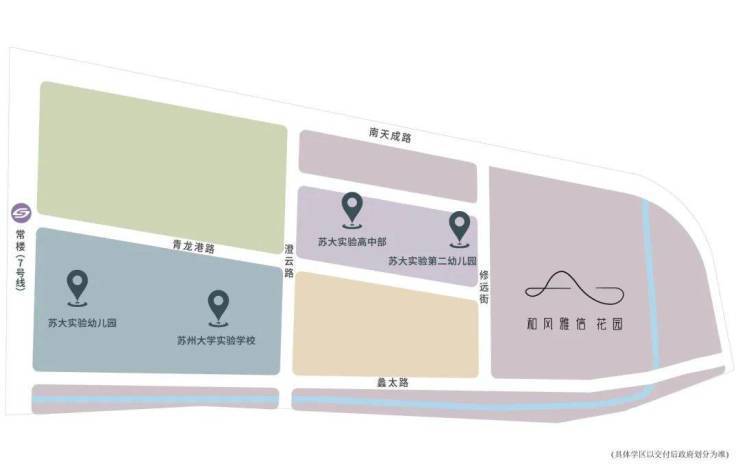 【学府环伺 人文高地】 孩子上学是头等大事,这里被众多名校环绕,比如苏州大学实验学校(从幼儿园到高中都有)、南师大苏州实验学校等,人文教育氛围非常浓厚,是理想的学区房选择。(具体学区以交付后政府划分为准)。