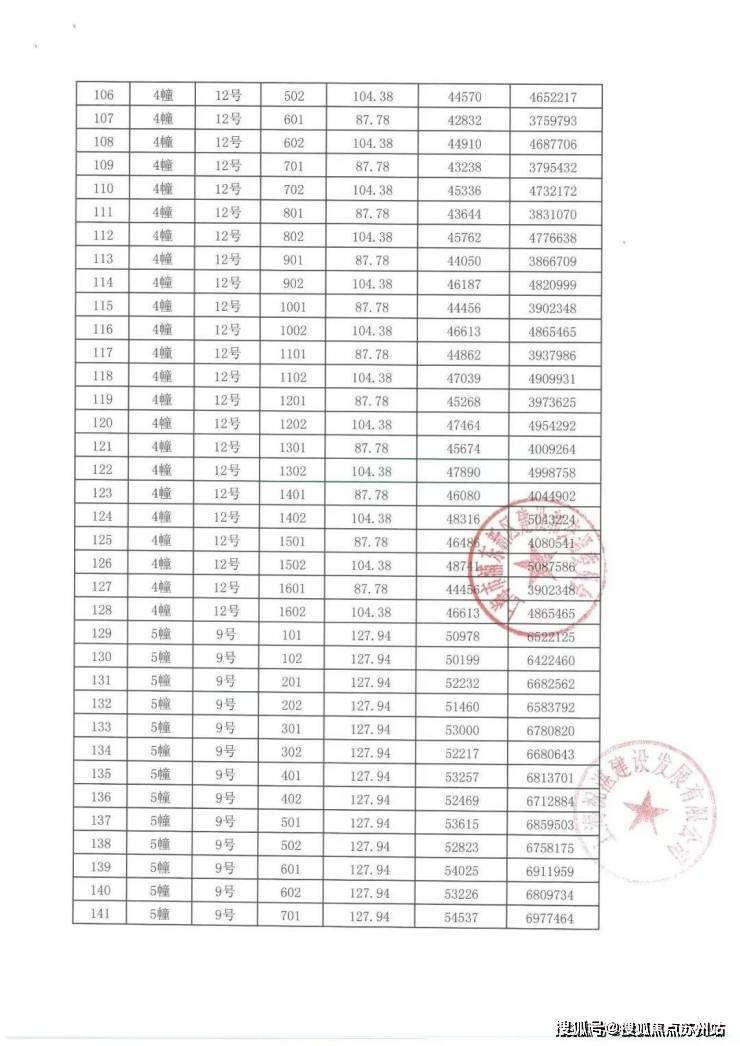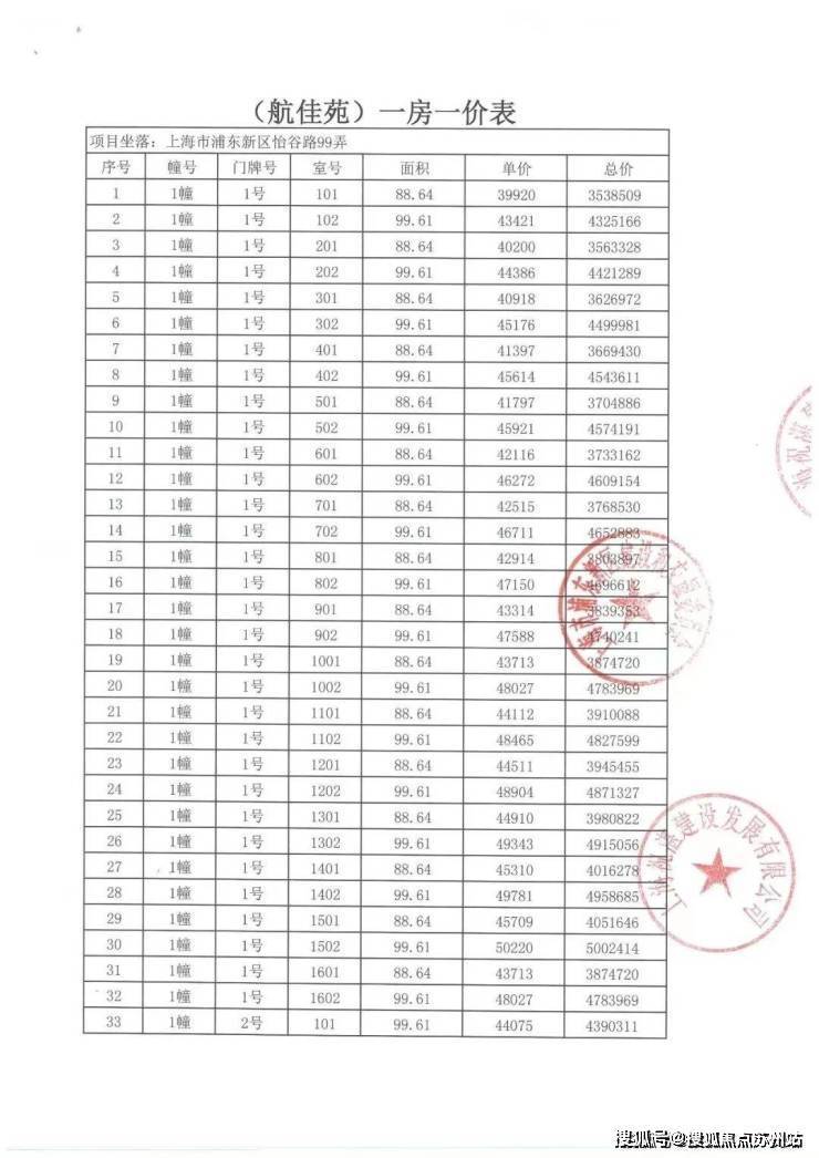 一房一价表: