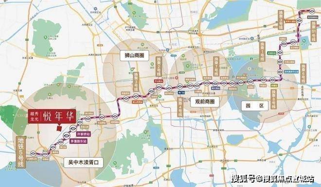一脉主轴5号线,串联四大城区,途径木渎商圈、狮山商圈、观前商圈、园区湖东商圈,拉近版块边界,重塑城市格局.