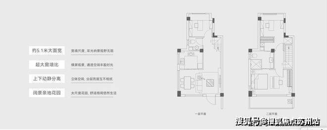 这套下叠户型,做到了约5.1米大面宽,配合上超大的强窗比,保证了室内的采光以及景观视野。