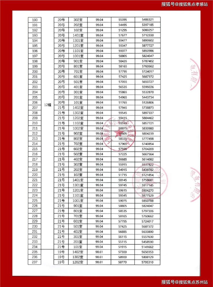 最新一房一价表: