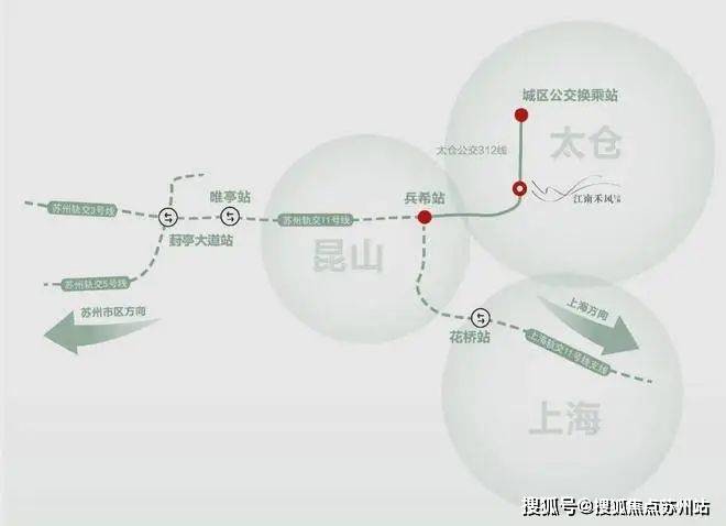 项目邻靠前进路、胜泾路、烟沪线(204国道),便捷接入两高(京沪/沈海高速),同频太仓“5+1”轨道交通网络(建设中),公交路线312路自江南禾风站,向西链接苏州轨交11号线,向东至科教新城客运站换乘60路,102路,112路,128路,以多维立体交通便捷出行长三角。(资料来源于太仓发布官微)