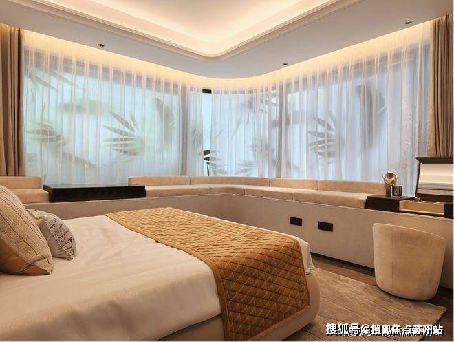 主卧拥有270度环幕观景飘窗,视野和采光都非常好。