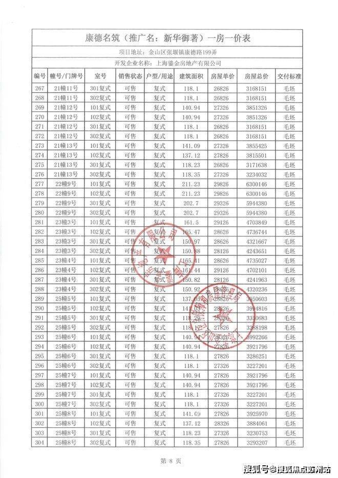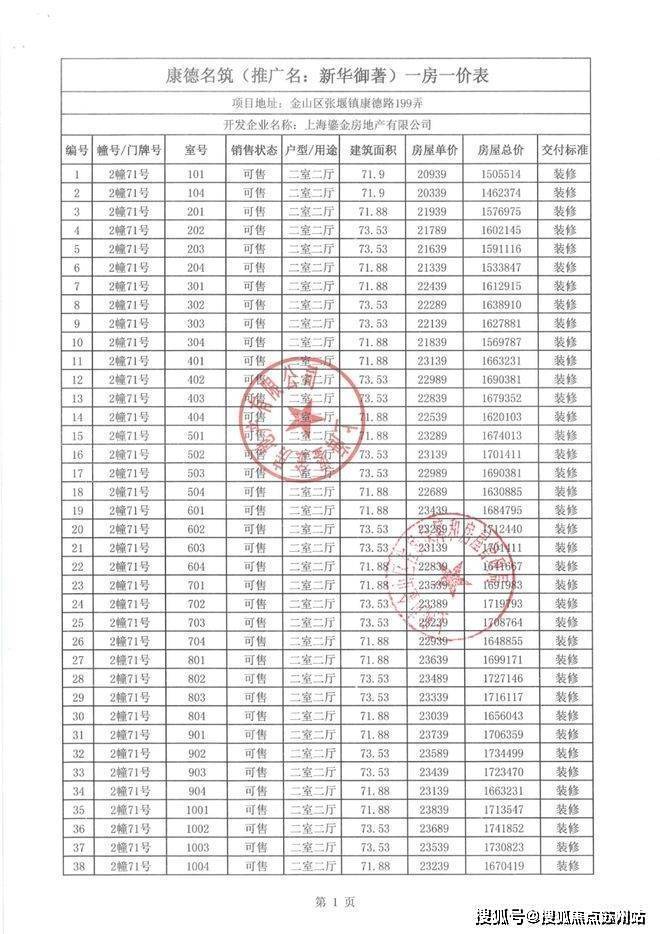 一房一价表如下: