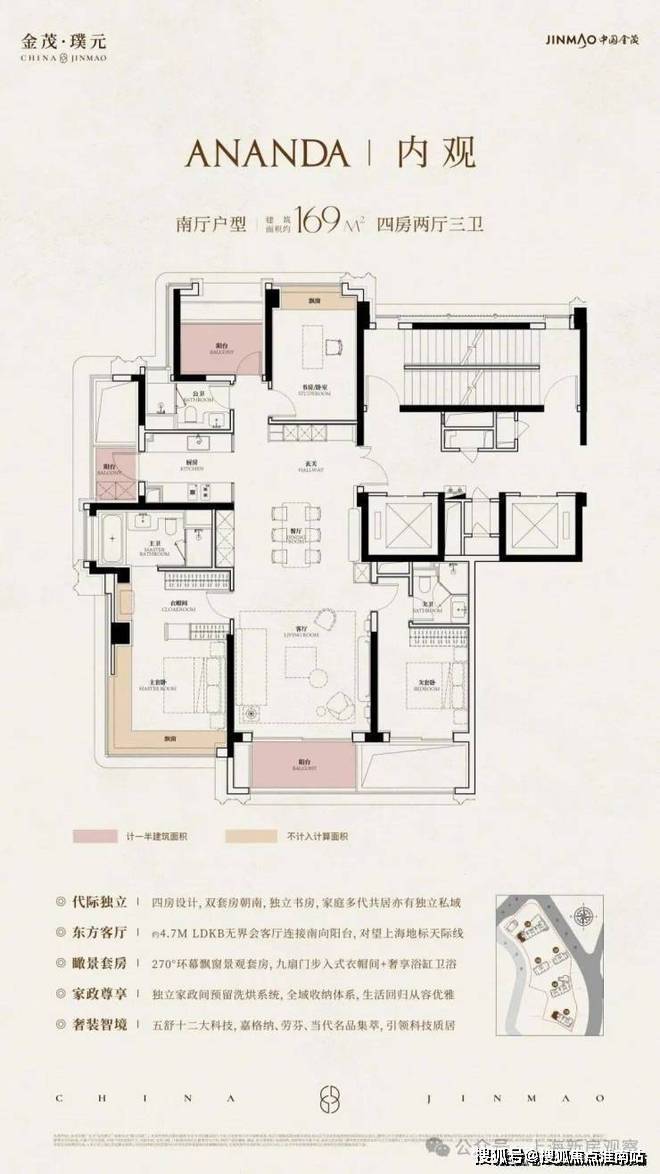 虹口“瑞虹地王”「金茂·璞元」二批次约126-170㎡3-4房;均价16.8万/㎡!!
