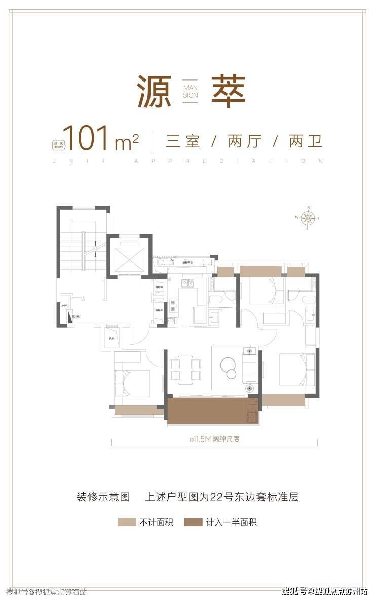 ⋄101㎡PLUS越阶三房:约5.3M阔尺横厅/约11.5M南向面宽,宽纳聚会欢愉;