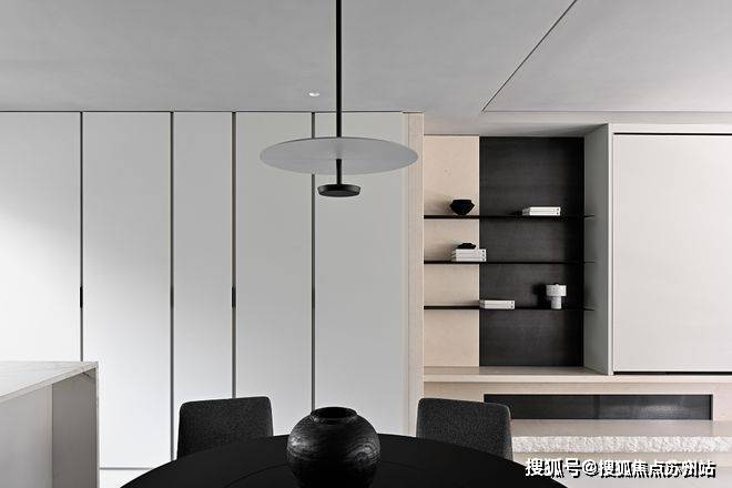 书房被藏在墙面的木色隐形门内,隐形门巧妙地在客厅与书房之间作了缓冲,避免白色“重叠”而造成疲劳感。