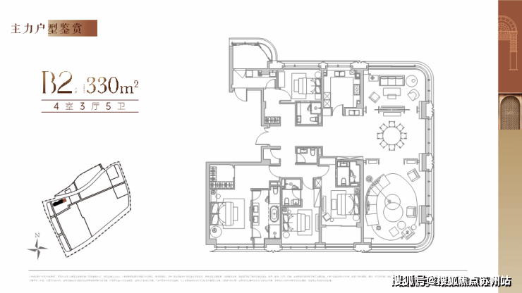 建面约310㎡四房三厅四卫