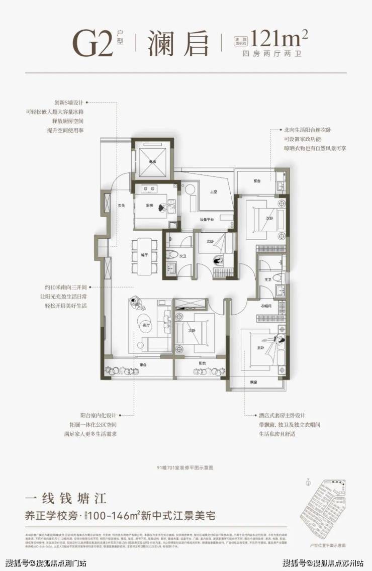 但云启钱湾的江景高层,面积是极为克制的建面约100-146㎡。