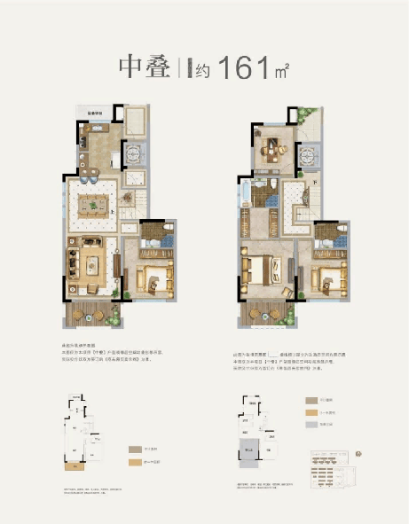约161㎡央景中叠:四房两厅三卫,约6.2米挑高设计,附赠约20㎡灵动空间,私家电梯直接入户,尊崇感拉满。
