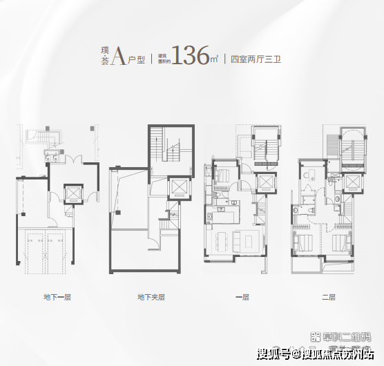 建面约136㎡下叠 4房两厅三卫
