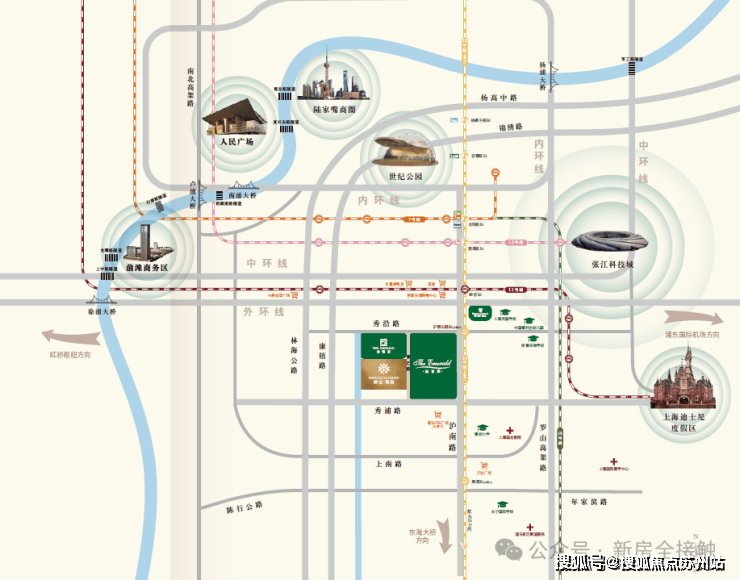并且凭借区域内的中环线、S20、11号线等道路交通设施。把康桥和前滩、张江科学城、迪土尼、浦东国际空港、外高桥自由贸易区等五大引擎连成一条黄金轴线。