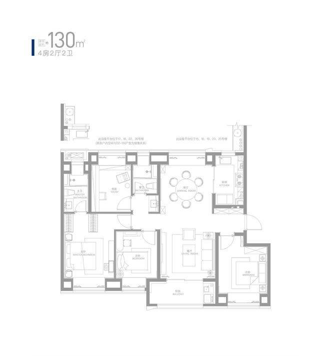 约130㎡四房,采用“飞机户型”设计,约13.5米整体面宽,拥享优秀光影与通透视野。