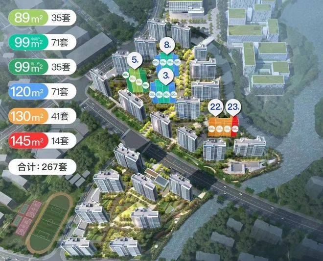 建面约89-99㎡性价比舒适三房、建面约130-145㎡双水岸景观四房,全维度升级居住空间。