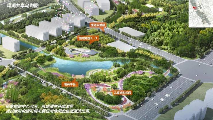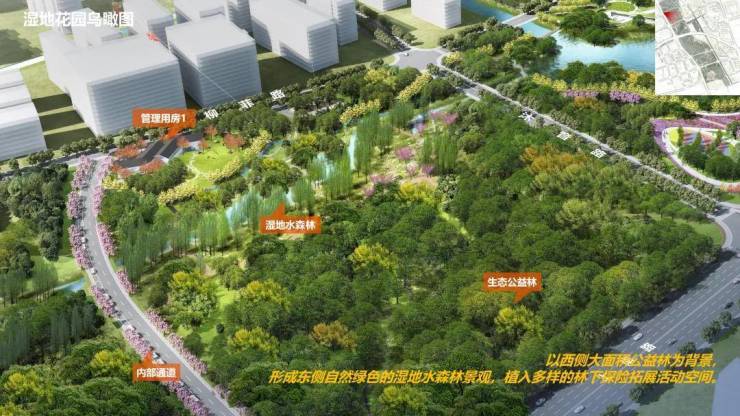这座南三林片区的中央公园,划分为:湿地花园区、鸣湖共享区、林荫跃动区和社邻园艺区,四大功能分区。嵌入人性化和生态化的设施,激活场地引人入园,构建市民休闲化的游憩绿地。